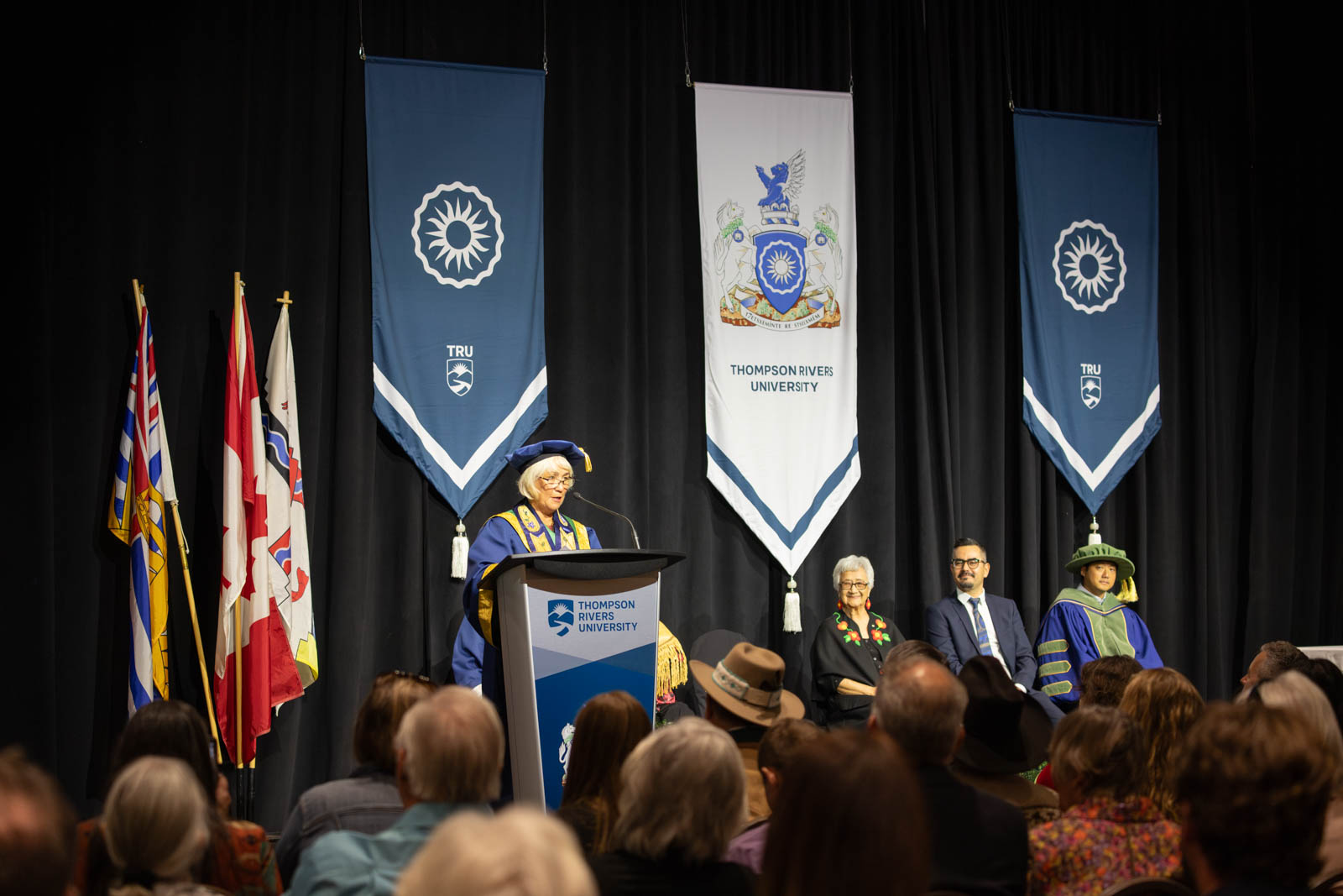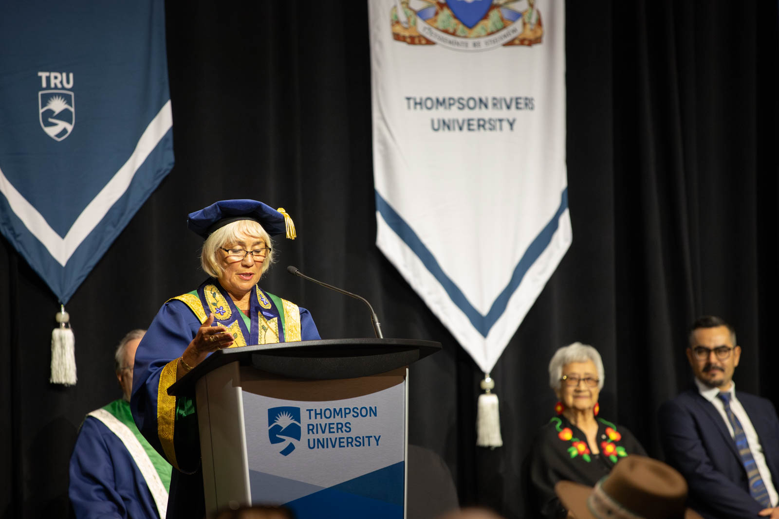 It’s my honour to stand before you as Thompson Rivers University’s fourth chancellor. This rates right up there with my family with the Canucks making the playoffs