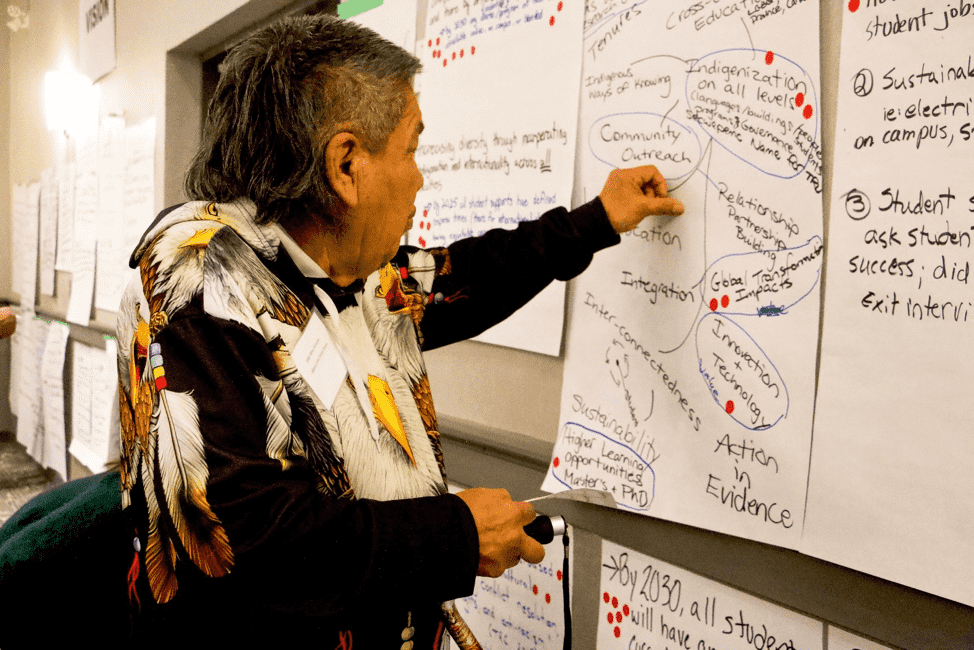 Vision: Participants felt strongly about including Secwépemc concepts. Aspirations for TRU to be a university that embraces adaption, innovation and accessible pathways to students and the theme of “local to global” also came through.