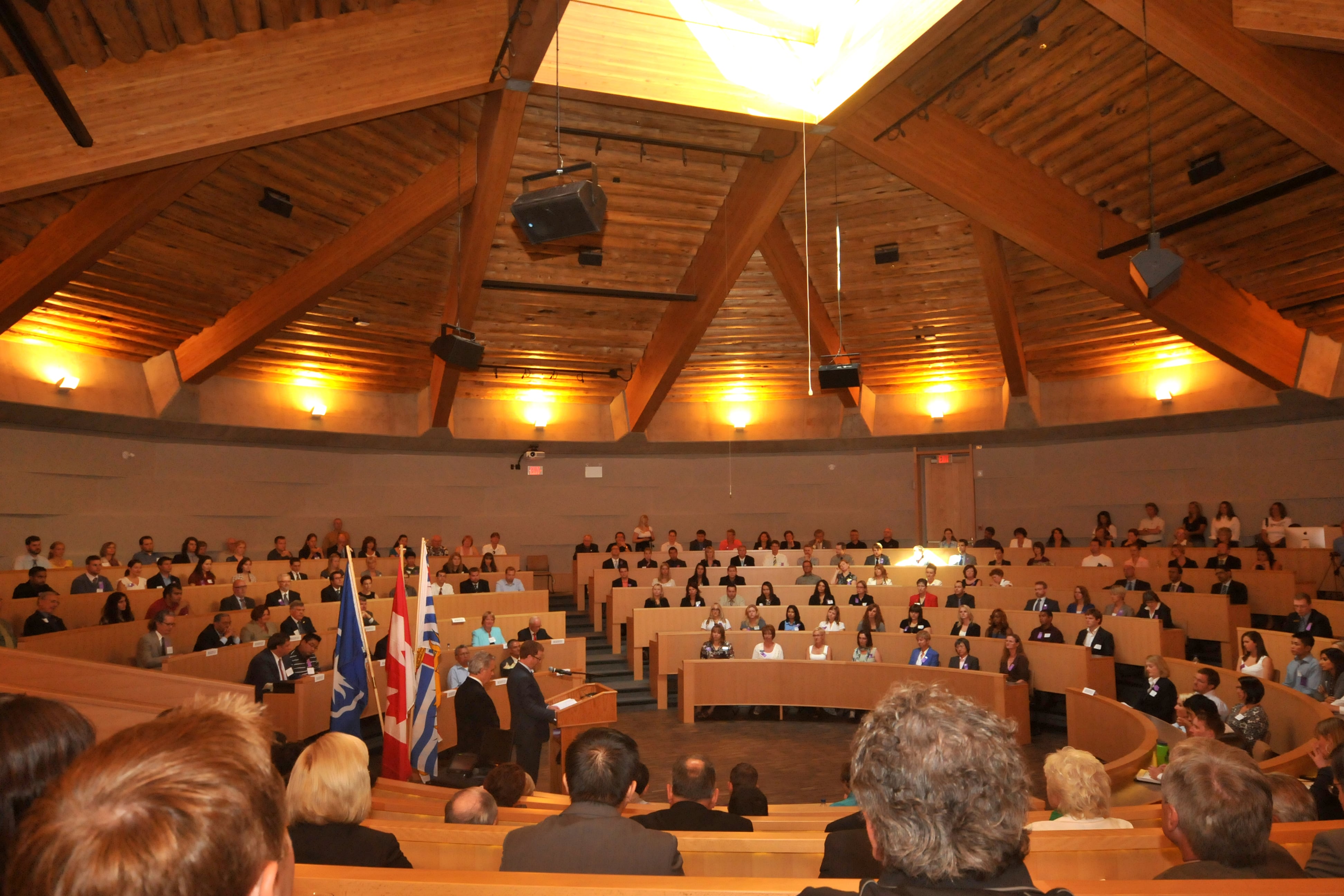 This is the largest in-the-round lecture theatre in the province. The theatre encourages and facilitates interactive dialog in the tradition of Indigenous culture, featuring 600 square feet of presentation space with state-of-the-art technology. Ideal for lectures, presentations, meetings, symposiums and conferences.