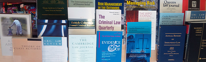 Our faculty's research has been cited by scholars and courts including the Supreme Court of Canada. Faculty members have also appeared before a variety of courts and tribunals in significant cases, including the Supreme Court of British Columbia, the British Columbia Court of Appeal, and the Supreme Court of Canada.