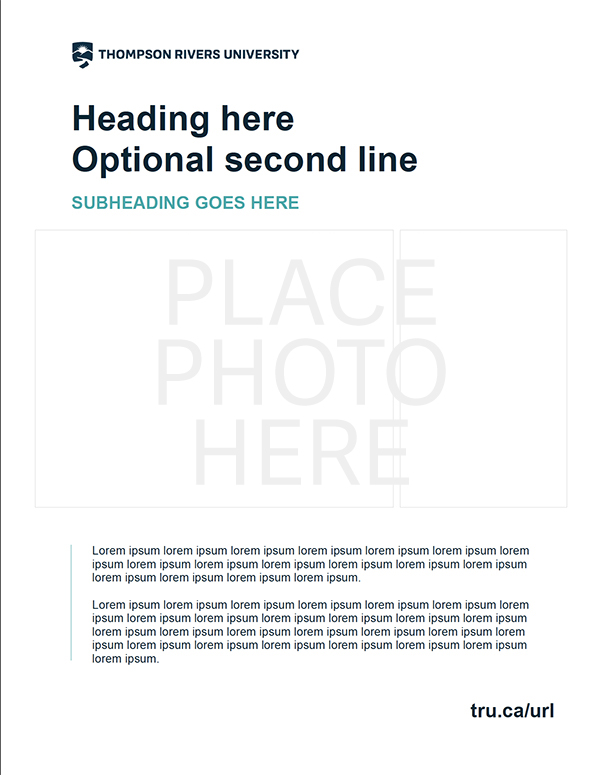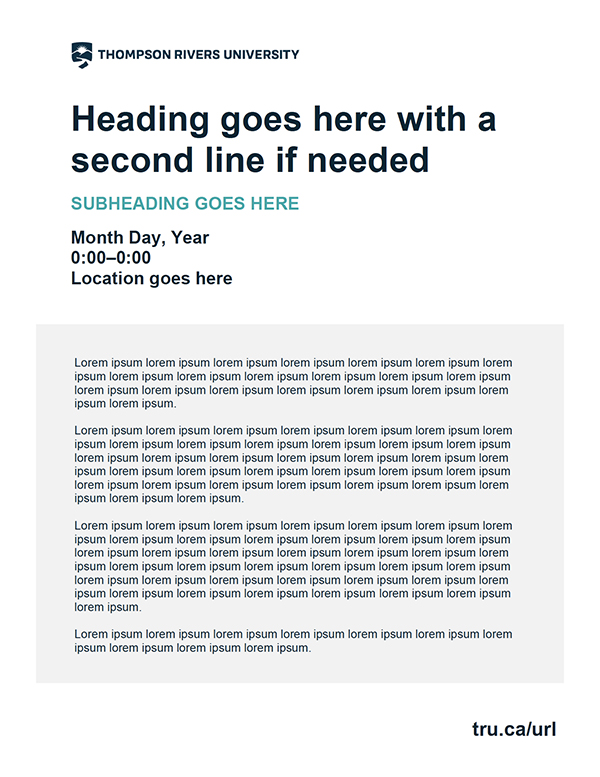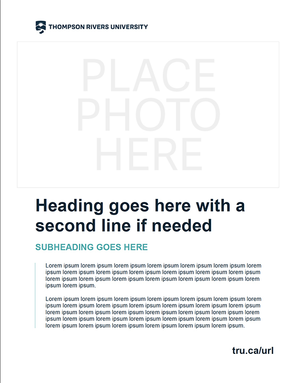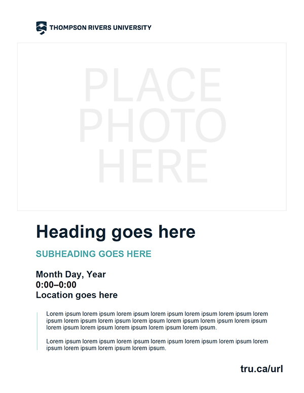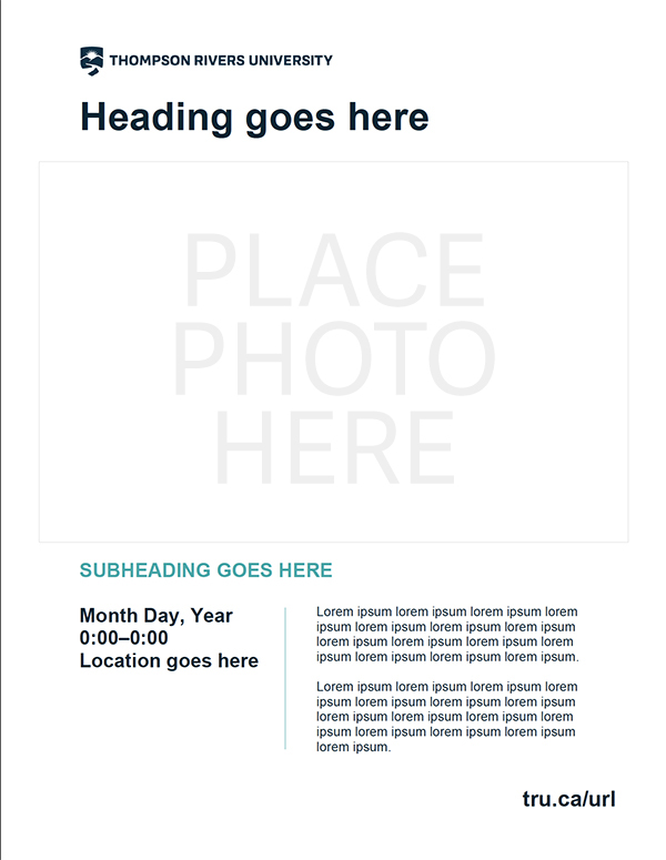 This selection of standard letter-size poster templates is provided in Microsoft Word. Before you start, check the Photography and Voice, Tone and Style guidelines to ensure your content reflects the TRU brand.