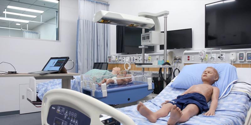 Utilizes computerized mannequins to engage students and faculty in teaching methods that may not be possible using real patients. Outfitted with eight beds and various programmable mannequins to reflect real patient situations, including pediatrics. Control rooms allow faculty to simulate a range of emergency situations and monitor student response. Here, students develop confidence in clinical practice knowledge and skills.