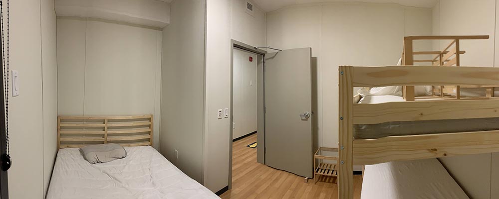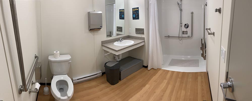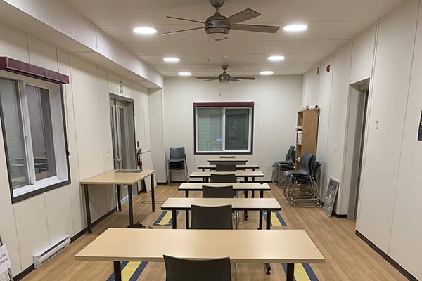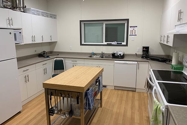 The main facility is a modern, comfortable facility with a full commercial kitchen, double ovens, a full sized fridge and freezer. There are 3 toilets, 2 showers, as well as a separate accessible bathroom with large shower. The main facility has 6 rooms that sleep 3 people each, plus a large common area that could be used as a classroom, dining hall or lounge space.