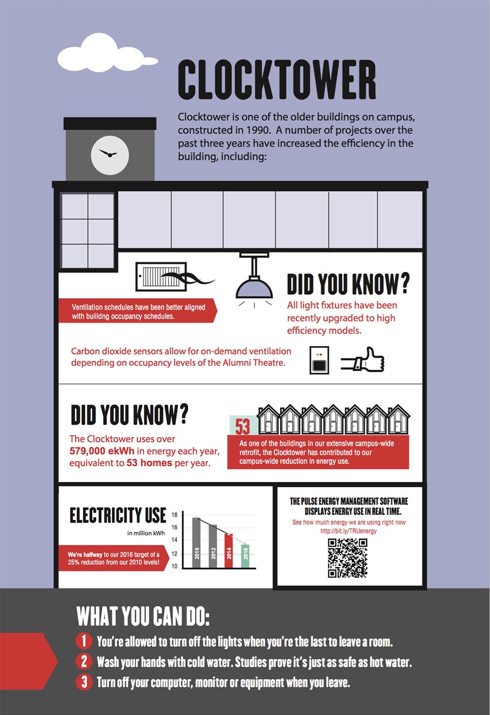 Clock Tower is one of the older buildings on campus, constructed in 1990. A number of projects have increased the efficiency in the building, including: