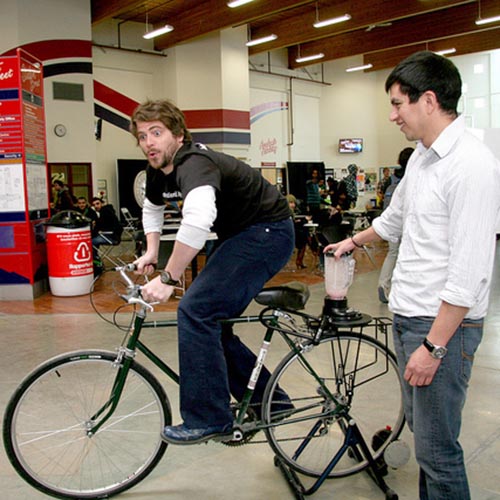 Hot chocolate and cookies will be offered to anyone who stops by our photo booth. Oh, and an old friend will be making an appearance to make sure your hot chocolate is nice and frothy — the blender bike is back! Peddling required.